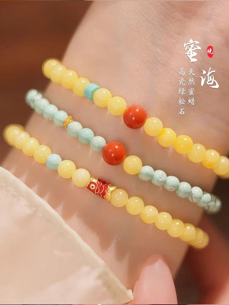 无相欢天然蜜蜡南红绿松石手串